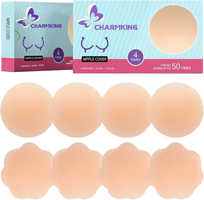 5. CHARMKING Pasties Nipple Covers 4 Pairs for Women, Reusable Adhesive