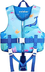 The Welebar Kids Swim Vest offers an ideal blend of comfort and security. Its adjustable chest strap and safety buckles provide a snug fit, while the soft neoprene and polyester materials ensure gentle contact with your child’s skin. Buoyancy is ensured by high-quality EPE, keeping your toddler confidently afloat.